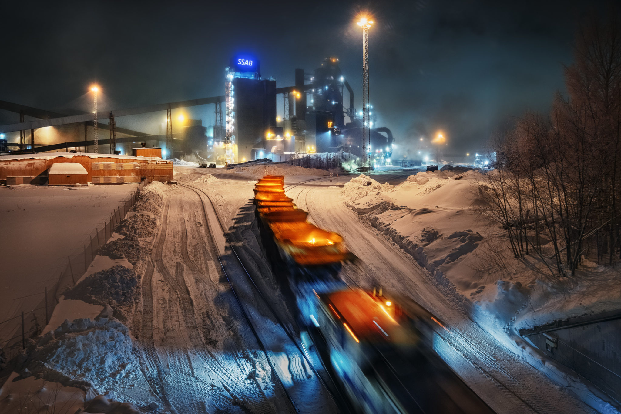 A train carrying molten iron leaves a blast furnance at a steel plant in Luleå, inside Sweden’s polar region. The steel industry is the world’s most pollutive n terms of carbon emission, contributing to around 8% of global greenhouse gas. In Sweden, SSAB is responsible for 10% of its emissions. SSAB is transforming to fossil-free steel-making with the HYBRIT green steel initiative. With HYBRIT technology, SSAB aims to be the first steel company in the world to use hydrogen technology to bring fossil-free steel to the market already in 2026 and largely eliminate carbon dioxide emissions from their own operations in around 2030. In 2016, SSAB, LKAB (Europe’s largest iron ore producer) and Vattenfall (one of Europe’s largest energy companies) joined forces to create HYBRIT – an initiative that endeavors to revolutionize steelmaking. Using HYBRIT technology, SSAB aims to replace coking coal, traditionally needed for ore-based steelmaking, with fossil-free electricity and hydrogen. The result will be the world’s first fossil-free steelmaking technology, with virtually no carbon footprint.