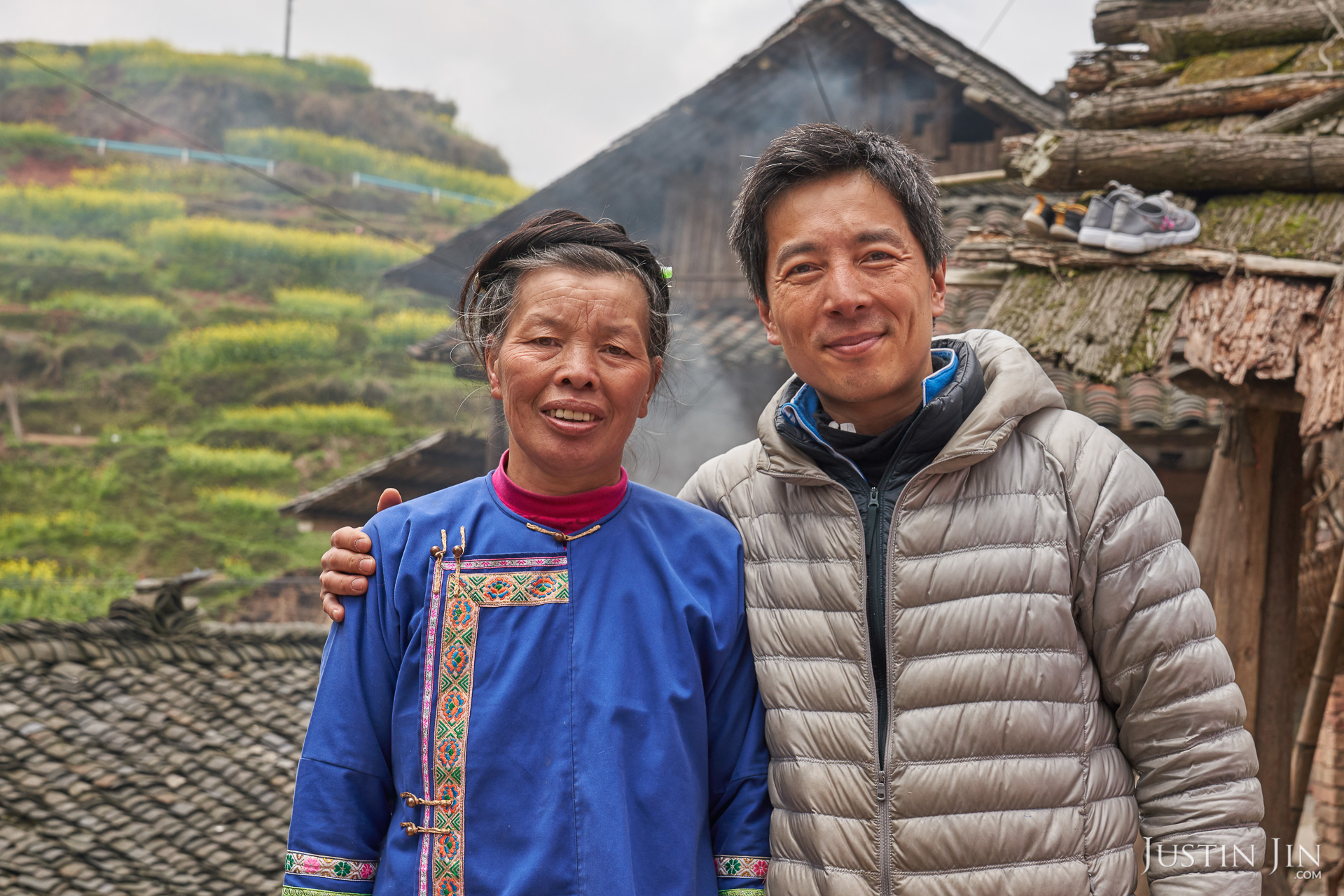 Mother Wu at home with children at Dimen village