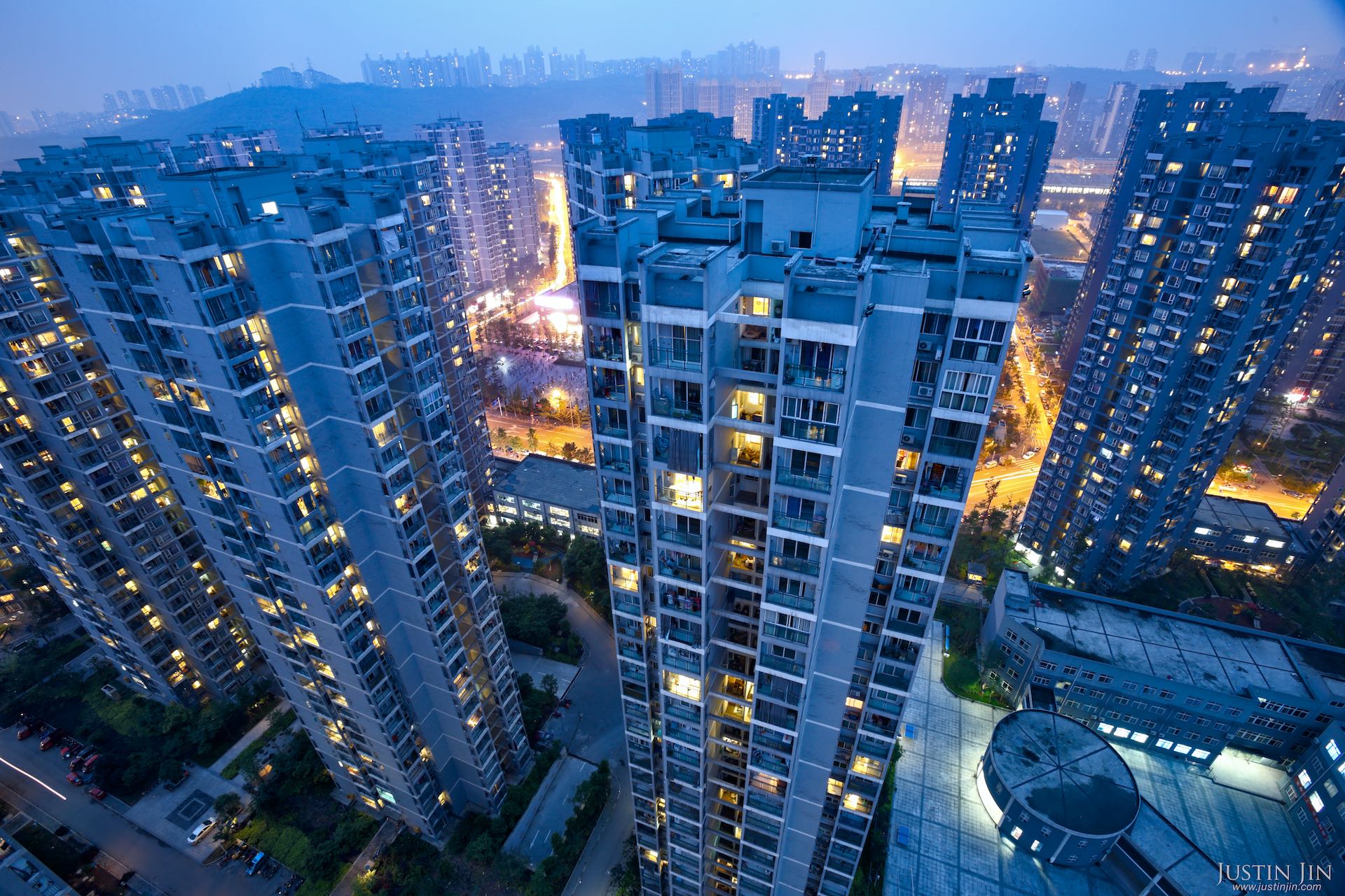 Panorama of farmer relocation housing estate in Chongqing