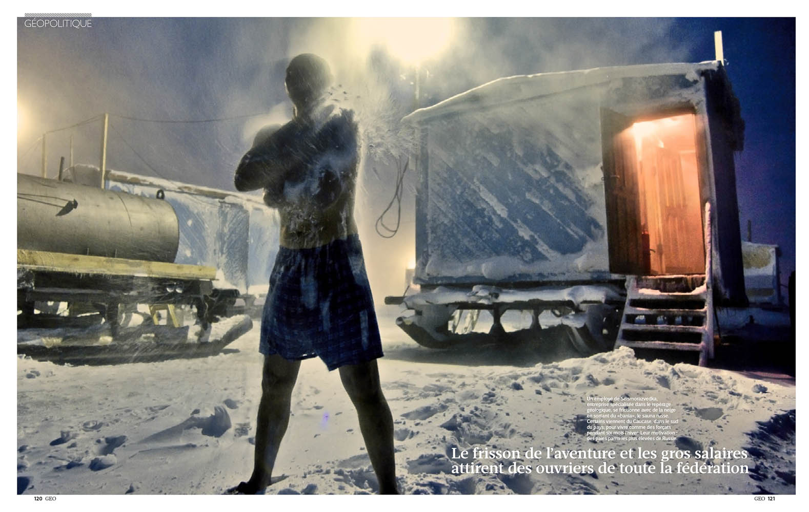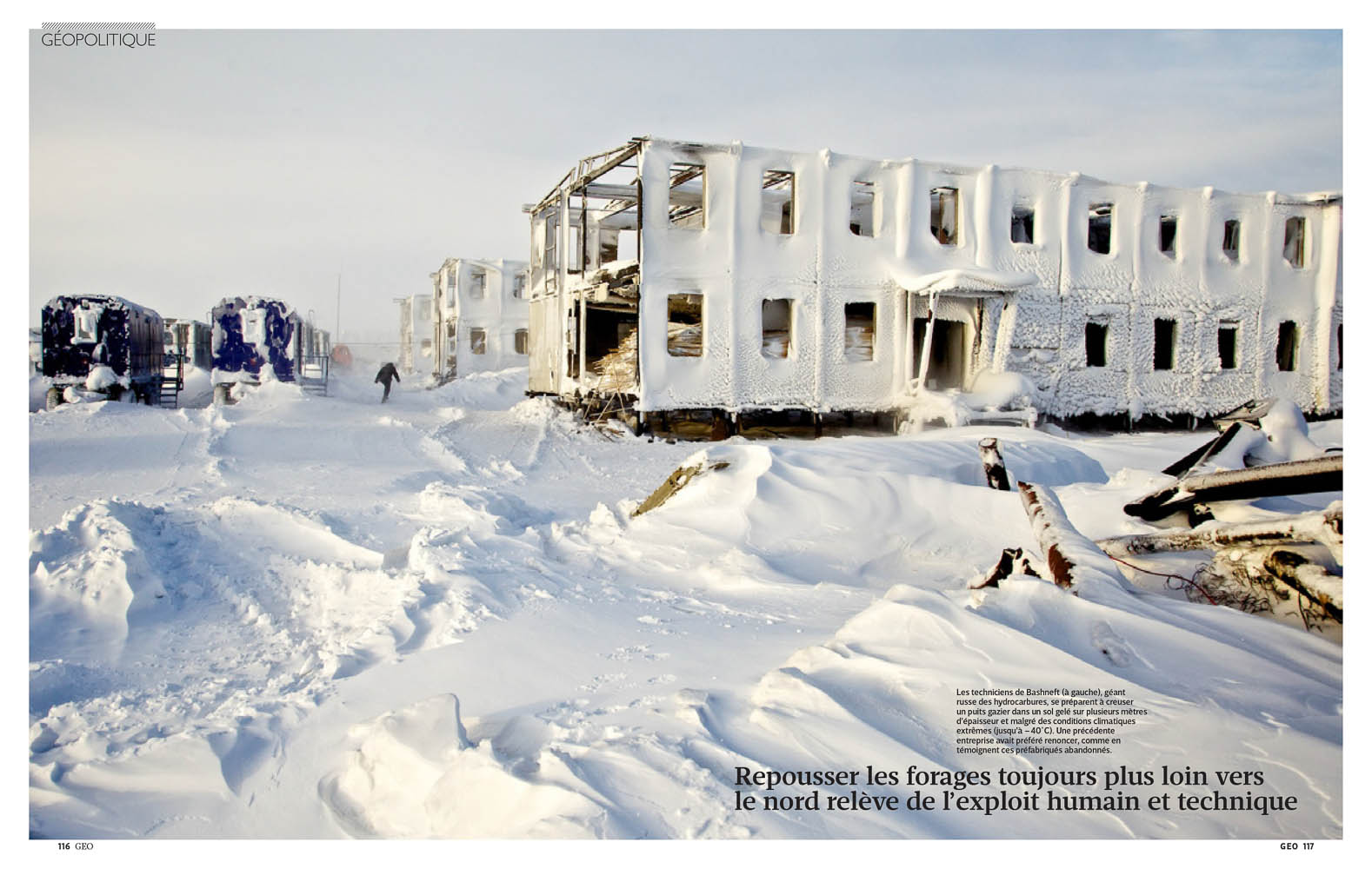 Razzia Russe sur la Banquise. La Russie part à la conquête de l’océan Arctique et de ses réserves colossales d’hydrocarbures, par photographe Justin Jin.Back to publications